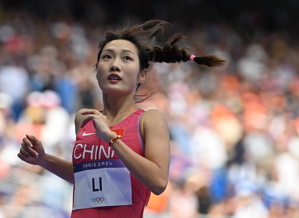 باريس 4 أغسطس 2024 (شينخوا) في الصورة الملتقطة يوم 4 أغسطس 2024، اللاعبة الصينية لي يوي تينغ تتفاعل بعد الجولة الأولى من سباق 200 متر سيدات ضمن منافسات ألعاب القوى بدورة الألعاب الأولمبية باريس 2024 في العاصمة الفرنسية باريس.