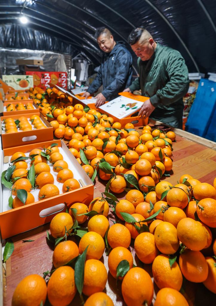 جياشينغ 29 نوفمبر 2024 (شينخوا) في الصورة الملتقطة يوم 28 نوفمبر 2024، موظفون يقومون بتعبئة فواكه البرتقال في مدينة جياشينغ في مقاطعة تشجيانغ بشرقي الصين. وتعتبر زراعة البرتقال أحد الإجراءات الهامة التي اتخذها حيّ نانهو في المدينة لدفع التنمية الريفية وزيادة دخل المزارعين.