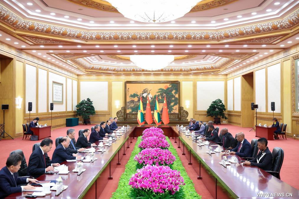 وأكد استعداد الصين لمواءمة استراتيجيات التنمية مع غرينادا، مضيفا أنه بناء على الجهود المشتركة في التعاون عالي الجودة في إطار مبادرة الحزام والطريق، يتعين على الجانبين تعميق التعاون في القطاعات التقليدية مثل الزراعة والبنية التحتية والرعاية الصحية، مع توسيع التعاون في المجالات الناشئة، من بينها الطاقة الجديدة والاقتصاد الرقمي والاقتصاد الأزرق.