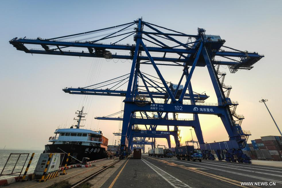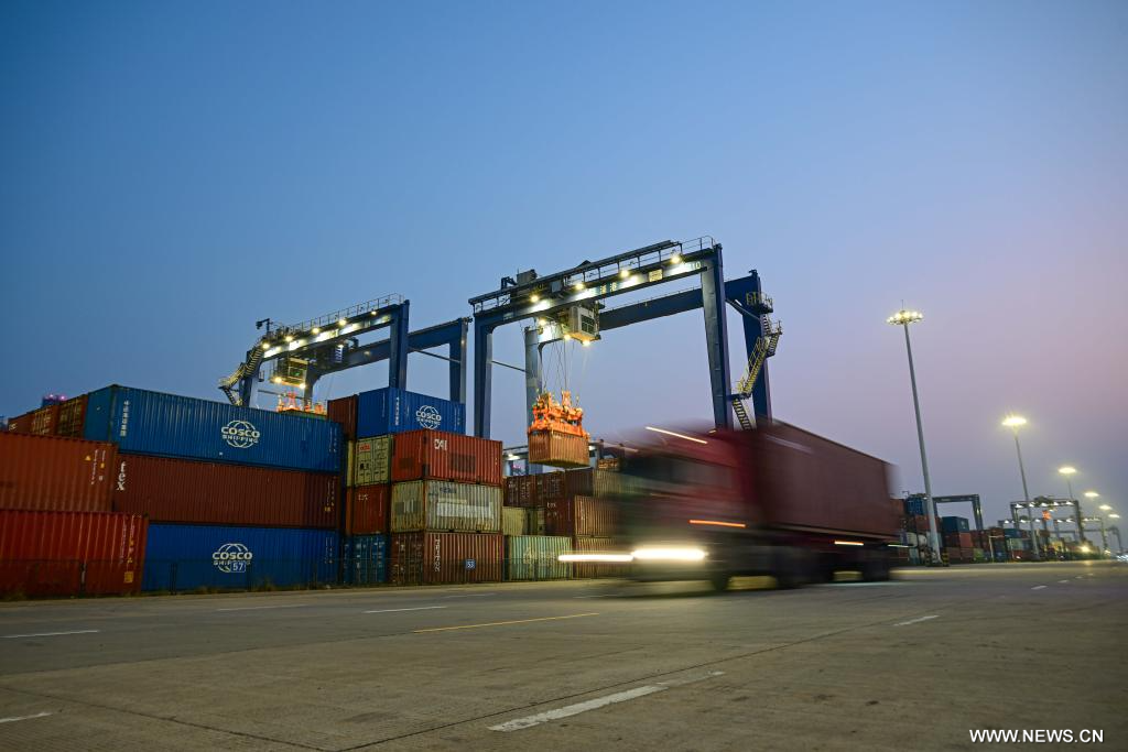 يانغبو 13 يناير 2025 (شينخوا) في الصورة الملتقطة يوم 9 يناير 2025، جانب من ميناء يانغبو الدولي للحاويات في منطقة يانغبو للتنمية الاقتصادية في مدينة دانتشو بمقاطعة هاينان جنوبي الصين.