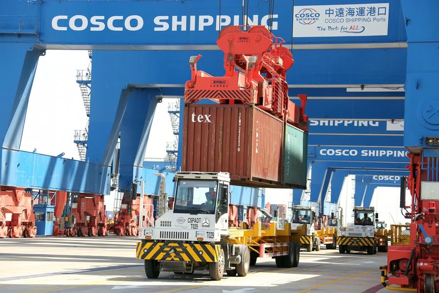 في مجال الشحن البحري، تبرز محطة كوسكو أبوظبي للحاويات التابعة لشركة "كوسكو" الملاحية للموانئ المحدودة، كواحد من أهم النماذج الناجحة للتعاون الصيني-الإماراتي في إطار البناء المشترك لـ"الحزام والطريق"، فمنذ بدء تشغيله تجاوز حجم عمليات المحطة 5.5 مليون حاوية قياسية .