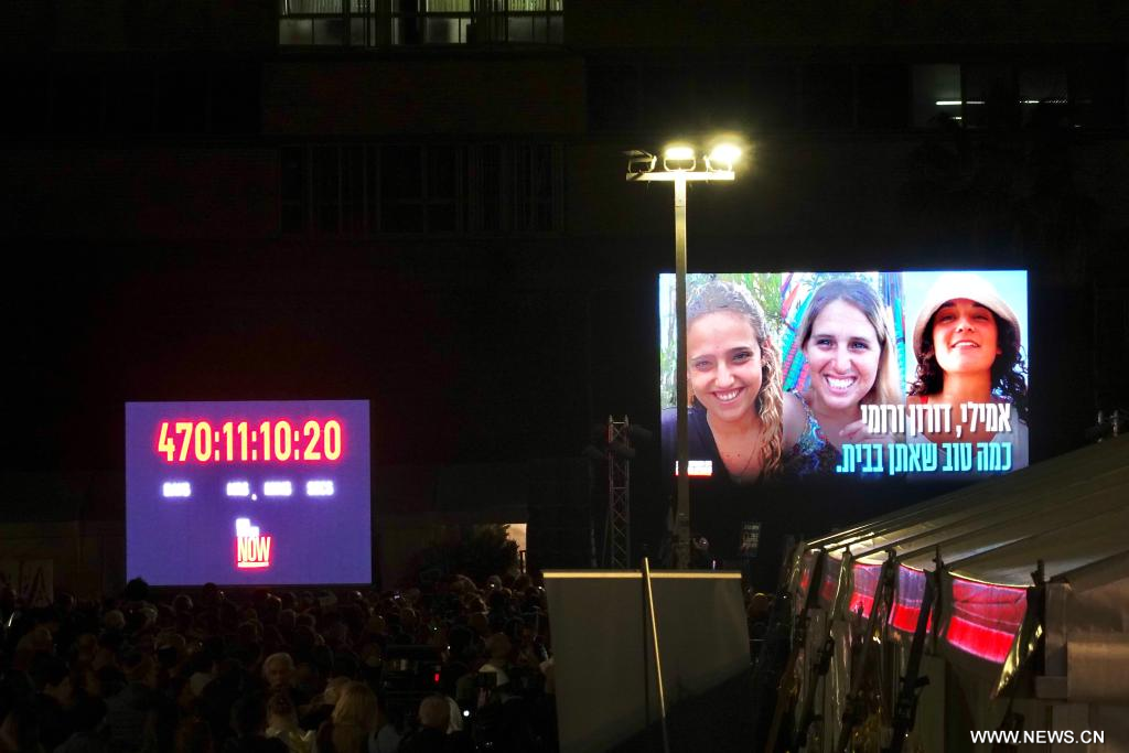 القدس 19 يناير 2025 (شينخوا) أعلن الجيش الإسرائيلي وصول الرهينات الثلاث اللاتي أفرجت عنهن حركة المقاومة الإسلامية (حماس) اليوم (الأحد) إلى داخل إسرائيل.