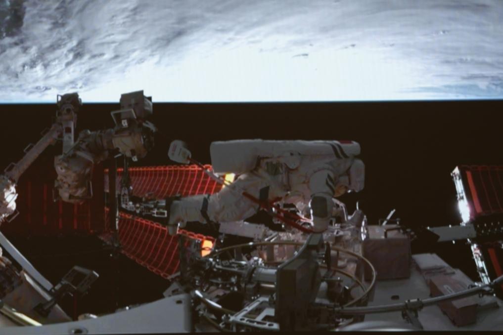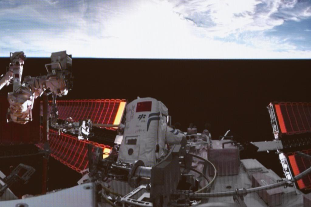 عاد تساي وسونغ، المكلفان بالمهمة خارج المركبة، بأمان إلى الوحدة المعملية "ونتيان".