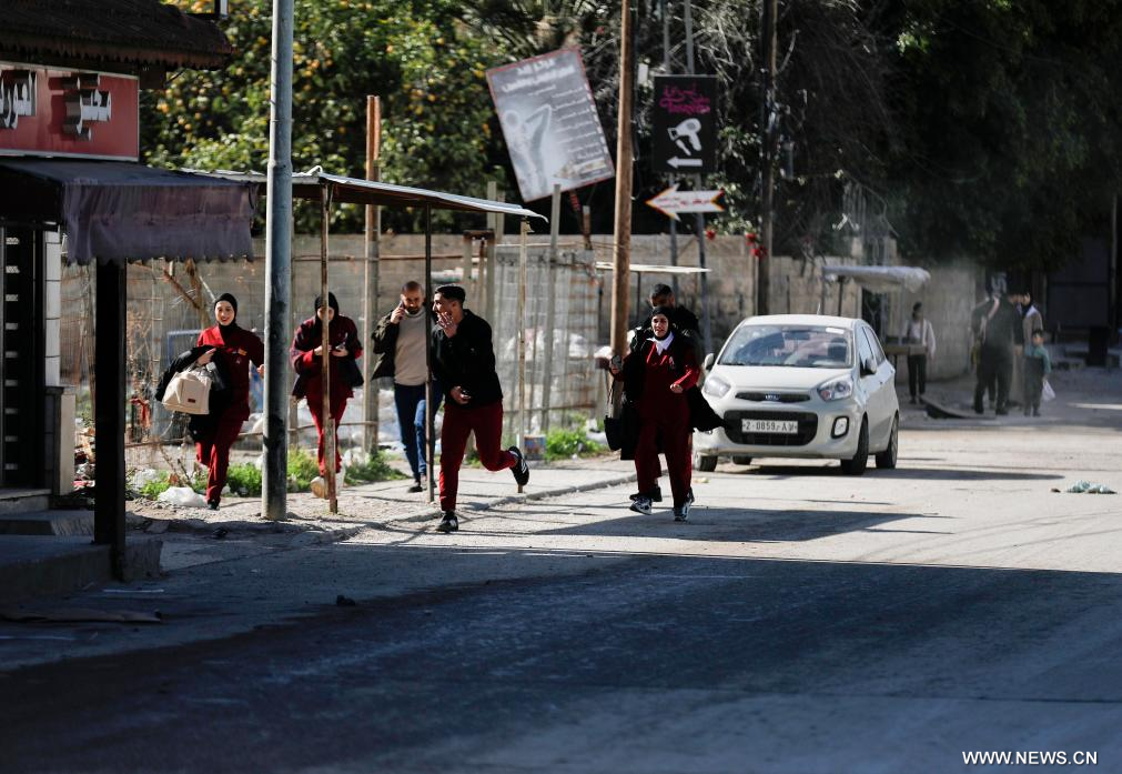 جنين 21 يناير 2025 (شينخوا) في الصورة الملتقطة يوم 21 يناير 2025، أشخاص يهرعون للاختباء خلال عملية عسكرية إسرائيلية في مدينة جنين بالضفة الغربية.