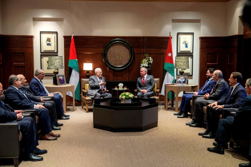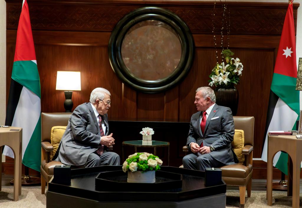 وأفاد الديوان الملكي في بيان بأن الملك عبد الله الثاني أكد خلال استقباله الرئيس الفلسطيني محمود عباس اليوم في قصر الحسينية بعمان، "ضرورة وقف إجراءات الاستيطان، ورفض أية محاولات لضم الأراضي وتهجير الفلسطينيين في غزة والضفة الغربية".