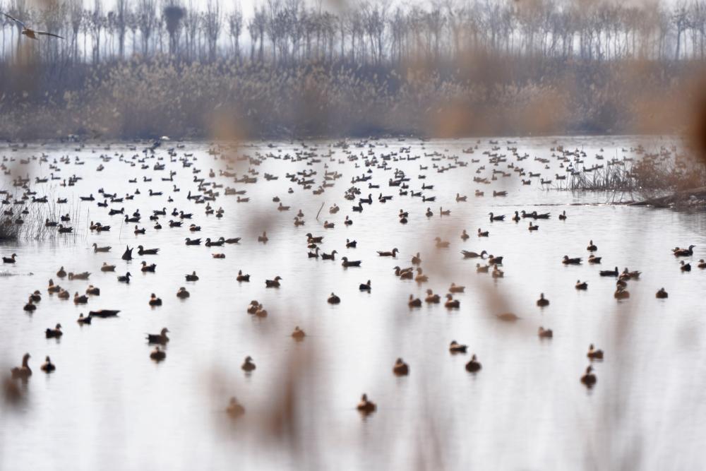 طيور مهاجرة على ضفاف النهر الأصفر بشمال غربي الصين