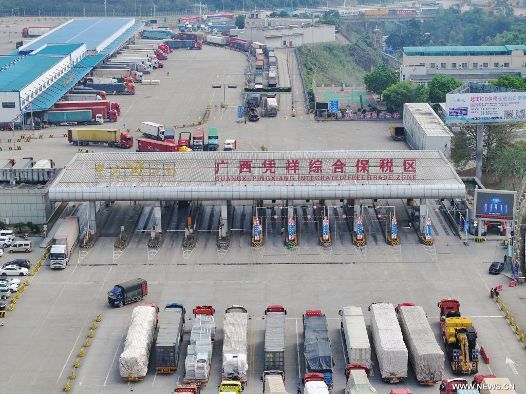 ناننينغ 3 مارس 2025 (شينخوا) في الصورة الملتقطة جوا أول مارس 2025، جانب من منطقة قوانغشي بينغشيانغ الشاملة للتجارة الحرة في مدينة بينغشيانغ بمنطقة قوانغشي ذاتية الحكم لقومية تشوانغ بجنوبي الصين.