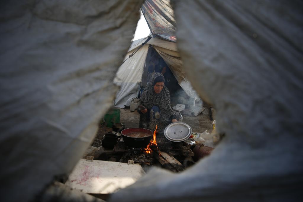 غزة 18 مارس 2025 (شينخوا) في الصورة الملتقطة يوم 17 مارس 2025، امرأة فلسطينية داخل خيمة في جباليا شمالي قطاع غزة.