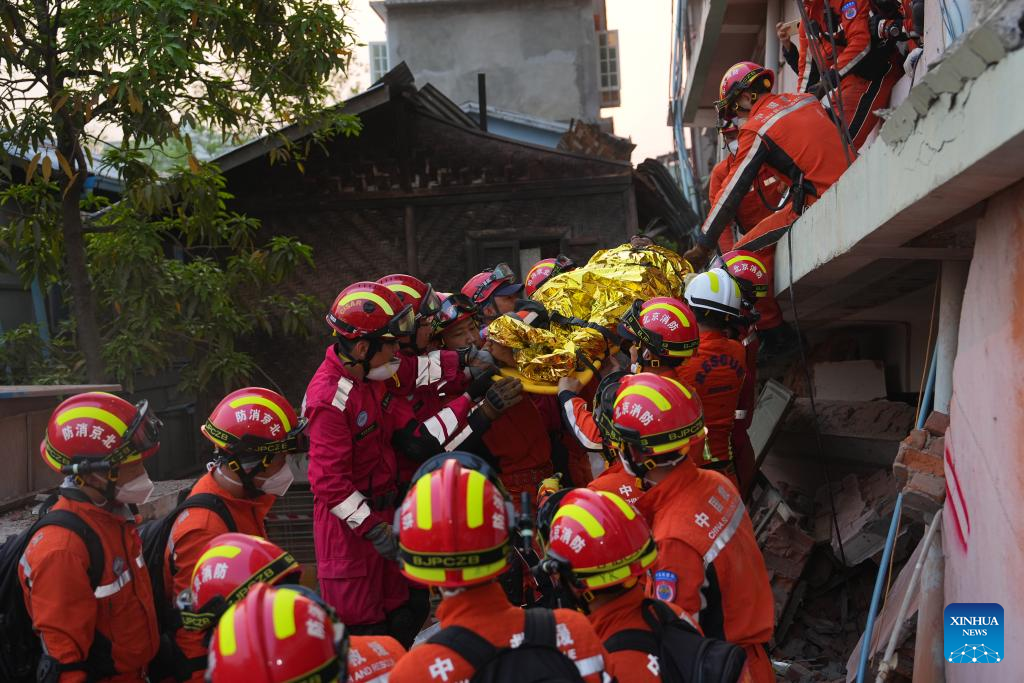 نُقل الناجي إلى مستشفى محلي لتلقي مزيد من العلاج. وهذه هي الحالة التاسعة التي تنجح فرق الإنقاذ الصينية في انتشالها.
