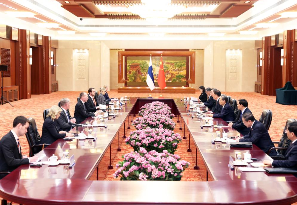 وأشار إلى أن هذا العام يوافق الذكرى الـ75 للعلاقات الدبلوماسية بين الصين وفنلندا، وقال إن الصين على استعداد للعمل مع فنلندا لتنفيذ التوافق المهم الذي توصل إليه رئيسا البلدين، من أجل تعزيز الشراكة التعاونية الجديدة والمستقبلية بين البلدين.
