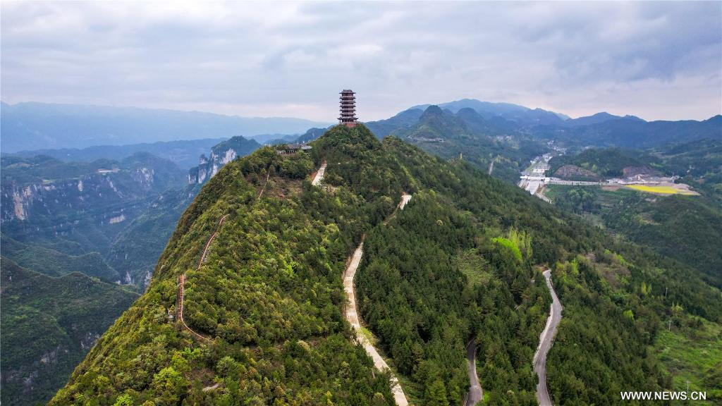 تشونغتشينغ 12 أبريل 2025 (شينخوا) في الصورة الملتقطة جوا يوم 6 أبريل 2025، جانب من حديقة يونيانغ الجيولوجية ببلدية تشونغتشينغ بجنوب غربي الصين، التي أدرجت حديثا ضمن قائمة الحدائق الجيولوجية العالمية لليونسكو.