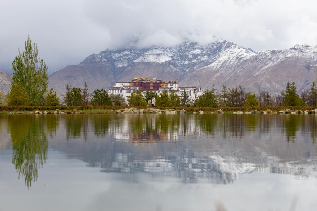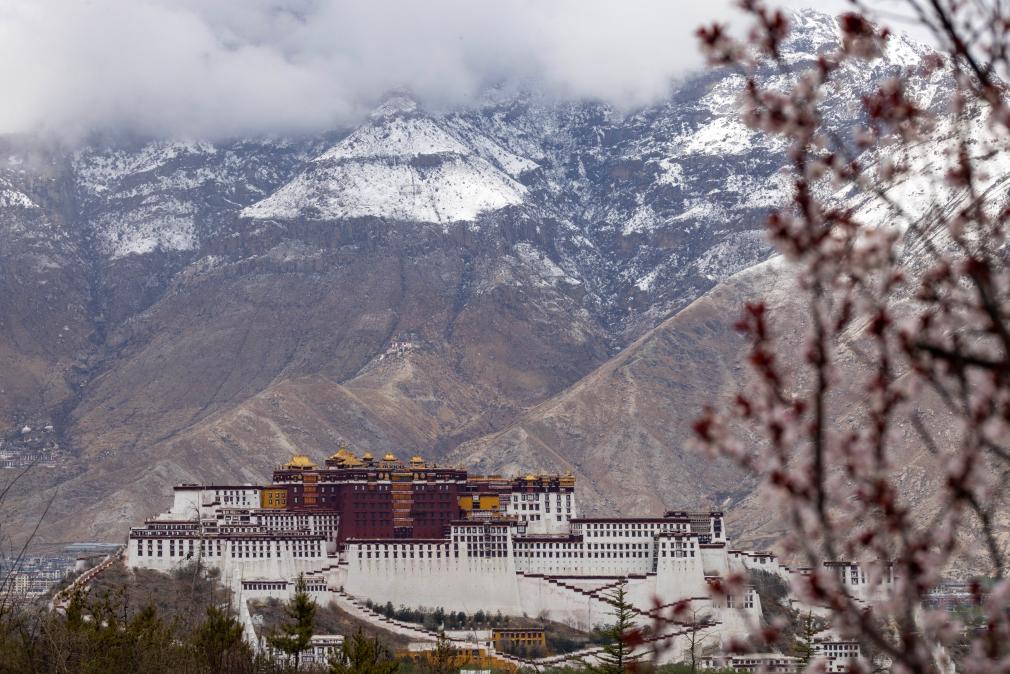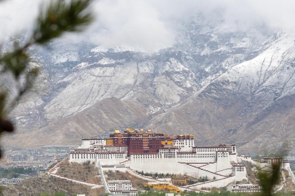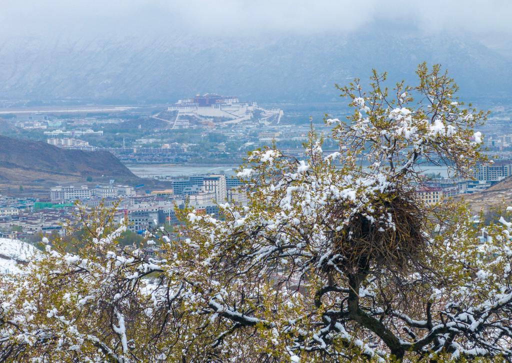 لاسا 16 أبريل 2025 (شينخوا) في الصورة الملتقطة يوم 15 أبريل 2025، منظر لقصر بوتالا الشهير من اتجاه حديقة نانشان في لاسا بمنطقة شيتسانغ ذاتية الحكم بجنوب غربي الصين. وفي مساء يوم 14 أبريل الجاري، تساقطت الثلوج في المنطقة الحضرية في لاسا.