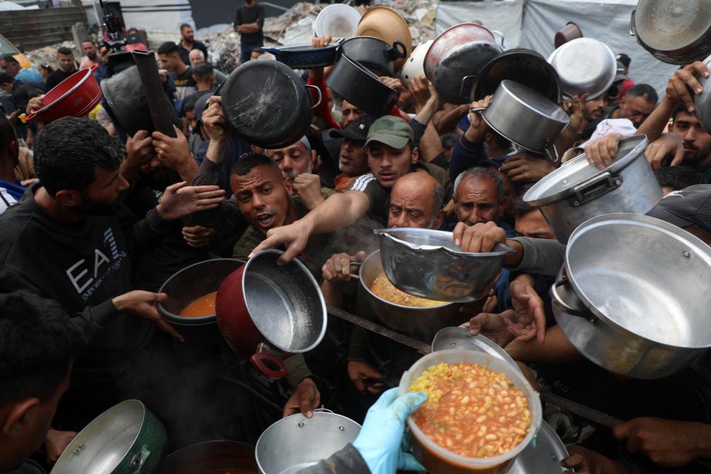 الصورة: تزاحم الفلسطينيين على وجبات مجانية وسط نضوب الغذاء في قطاع غزة