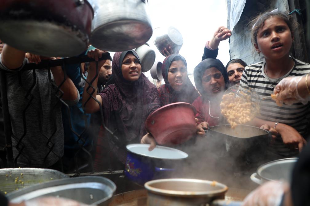 الصورة: تزاحم الفلسطينيين على وجبات مجانية وسط نضوب الغذاء في قطاع غزة