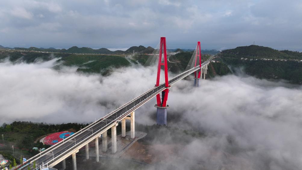 الصورة: مشهد جوي لجسر ضخم بجنوب غربي الصين