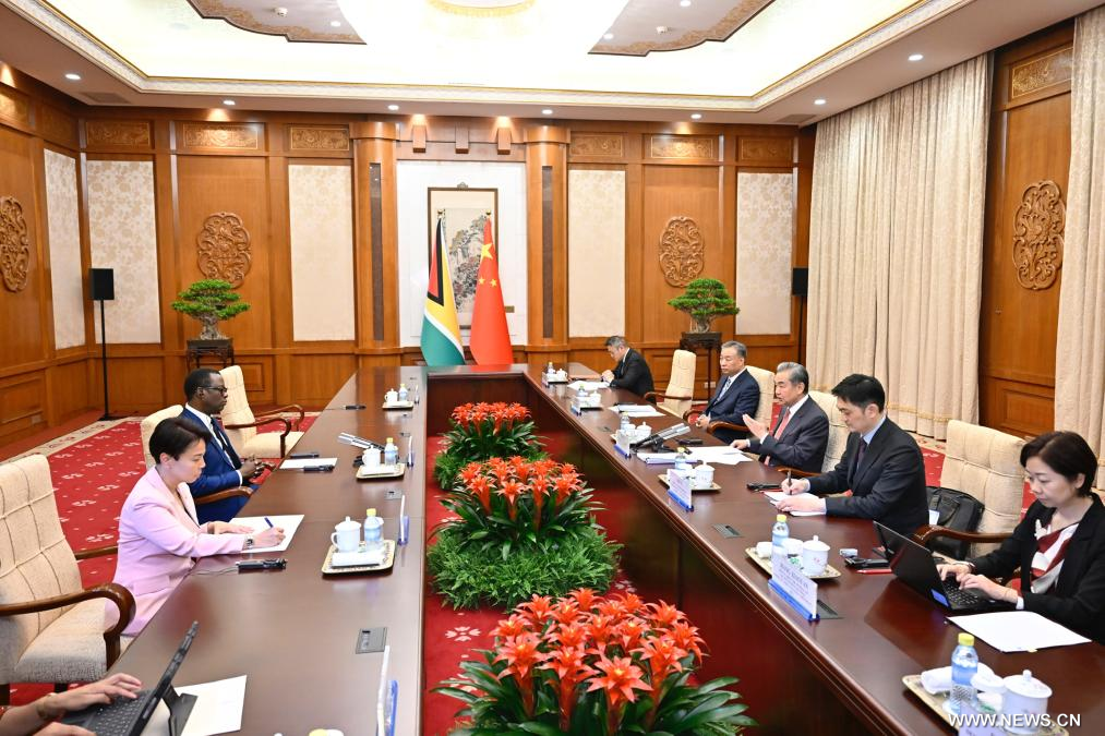 وخلال الاجتماع مع وزير خارجية غويانا هيو تود، أعرب وانغ عن استعداد الصين للعمل مع غويانا، بتوجيه من التوافق المهم الذي توصل إليه رئيسا الدولتين، لتعزيز التعاون عالي الجودة في إطار مبادرة الحزام والطريق، واستكشاف التعاون في المجالات الناشئة مثل الاقتصاد الرقمي والاقتصاد الأخضر، وتعميق التبادلات والتعاون في مجالات الرعاية الصحية والتعليم والثقافة والتبادلات الشعبية.