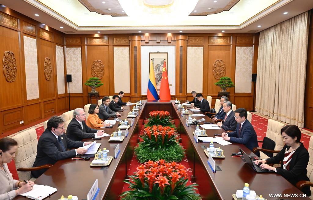 وخلال اجتماعه مع وزيرة الخارجية الكولومبية لورا سارابيا، هنأ وانغ كولومبيا على توليها الرئاسة الدورية لمنتدى الصين-سيلاك، قائلا إن الصين دائما ما تنظر إلى العلاقات الصينية-الكولومبية من منظور استراتيجي وطويل الأمد، وهي على استعداد لاستغلال الذكرى الـ45 لإقامة العلاقات الدبلوماسية بين البلدين كفرصة لتنفيذ التعاون في البناء المشترك لمبادرة الحزام والطريق.