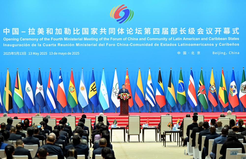 بكين 13 مايو 2025 (شينخوا) حضر الرئيس الصيني شي جين بينغ مراسم افتتاح الاجتماع الوزاري الرابع لمنتدى الصين-سيلاك (مجموعة دول أمريكا اللاتينية ومنطقة البحر الكاريبي) في بكين اليوم الثلاثاء.