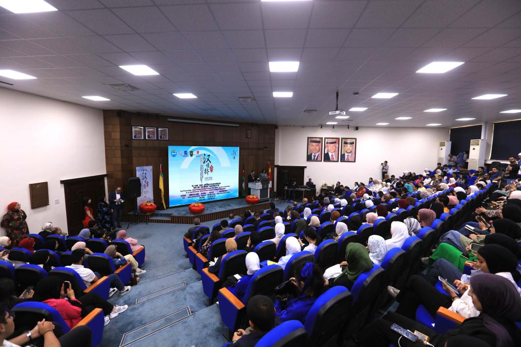 وأضاف أن اللغة هي نافذة معرفتنا بالعالم، ومن خلالها نتمكن من اكتشاف الكون بكل تفاصيله. من خلال اللغة الصينية نلمس جمال الحروف الصينية المتقنة ونستمتع بألحان الشعر الفاتنة ونغوص في عمق الحضارة الصينية. ومن خلال اللغة الصينية، نلمس نبض التحولات الزمنية ونقترب من الصين الحديثة التي تتسم بالانفتاح والتسامح وتطورها السريع الذي لايتوقف.