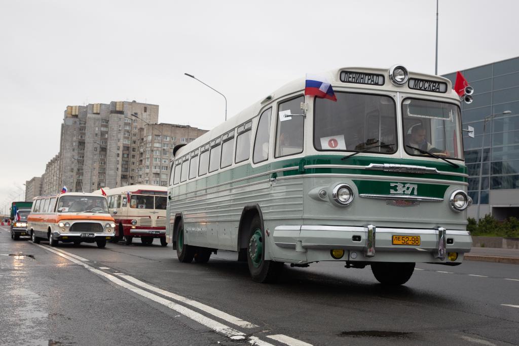 أقيم عرض المركبات القديمة هنا يوم السبت في إطار الاحتفال بالذكرى الـ 322 لتأسيس سانت بطرسبرغ التي توافق 27 مايو.