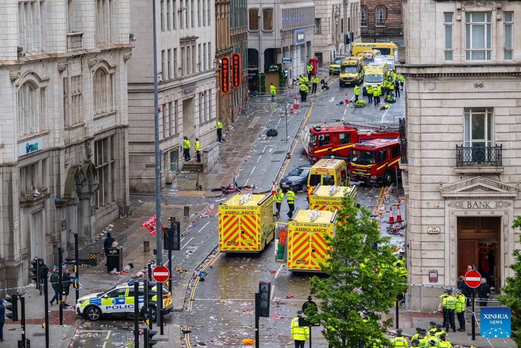 ودهست سيارة حشدا في مركز مدينة ليفربول في وقت سابق من يوم الاثنين أثناء تجمع الآلاف للاحتفال، حيث تم إيقاف السيارة بسرعة في الموقع، وتم القبض على المشتبه به الرجل.
