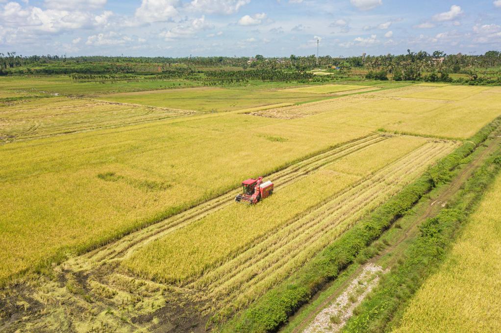 هايكو 9 يونيو 2025 (شينخوا) في الصورة الملتقطة جوا في 7 يونيو 2025، حصادة تحصد الأرز في حقل بقرية موهتشياو في حي تشيونغشان بمدينة هايكو، حاضرة مقاطعة هاينان بجنوبي الصين. وحل موسم حصاد الأرز في موهتشياو، حيث يستغل المزارعون الطقس الجيد لتسريع الحصاد.
