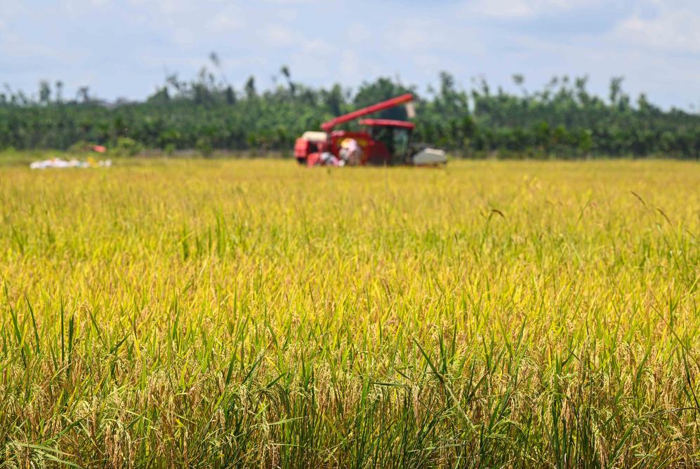 هايكو 9 يونيو 2025 (شينخوا) في الصورة الملتقطة في 7 يونيو 2025، حصادة تحصد الأرز في حقل بقرية موهتشياو في حي تشيونغشان بمدينة هايكو، حاضرة مقاطعة هاينان بجنوبي الصين. وحل موسم حصاد الأرز في موهتشياو، حيث يستغل المزارعون الطقس الجيد لتسريع الحصاد.