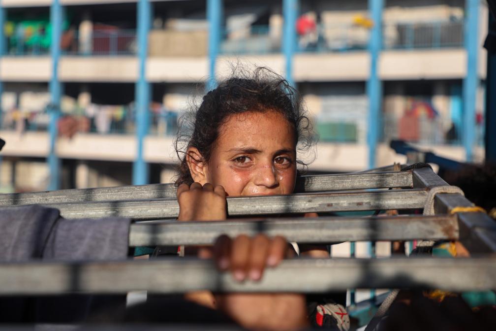 غزة 21 يونيو 2025 (شينخوا) في الصورة الملتقطة يوم 20 يونيو 2025، طفلة فلسطينية نازحة داخل مدرسة تحولت إلى ملجأ في مدينة غزة.