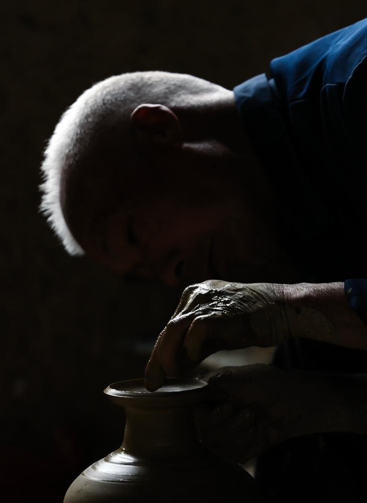 تشنتشو 21 يونيو 2025 (شينخوا) في الصورة الملتقطة يوم 17 يونيو 2025، فانغ ليانغ شنغ، وهو حرفي لصناعة الفخار يصنع قطعة من الفخار في بلدة بوله في محافظة قويدونغ بمقاطعة هونان في وسط الصين.
