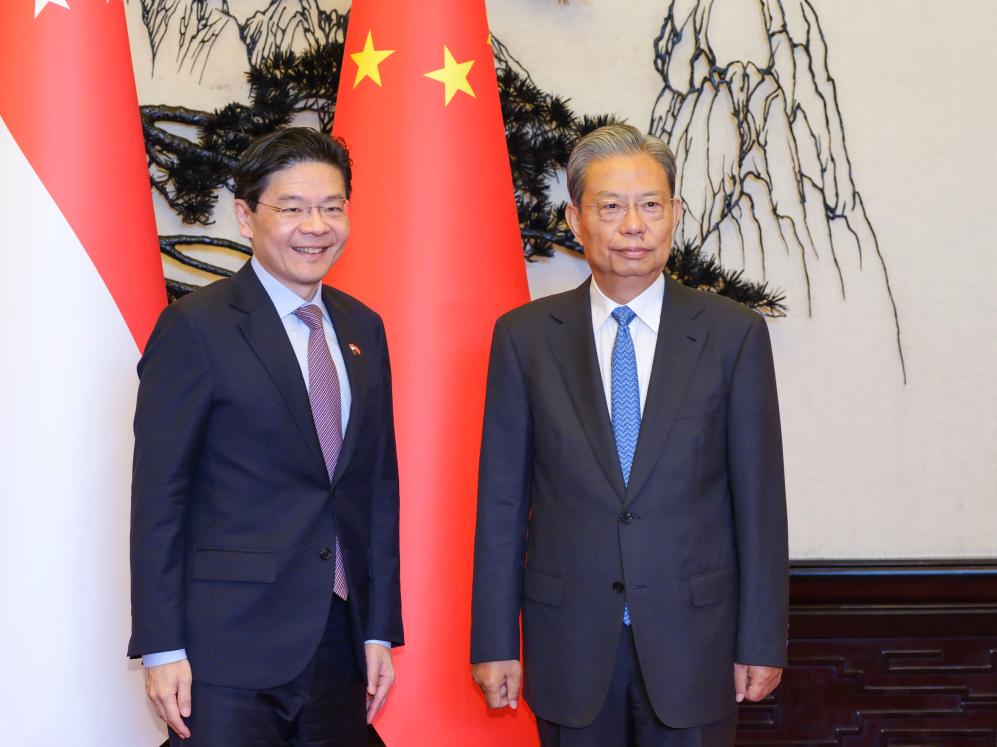 كبير المشرعين الصينيين يلتقي رئيس الوزراء السنغافوري