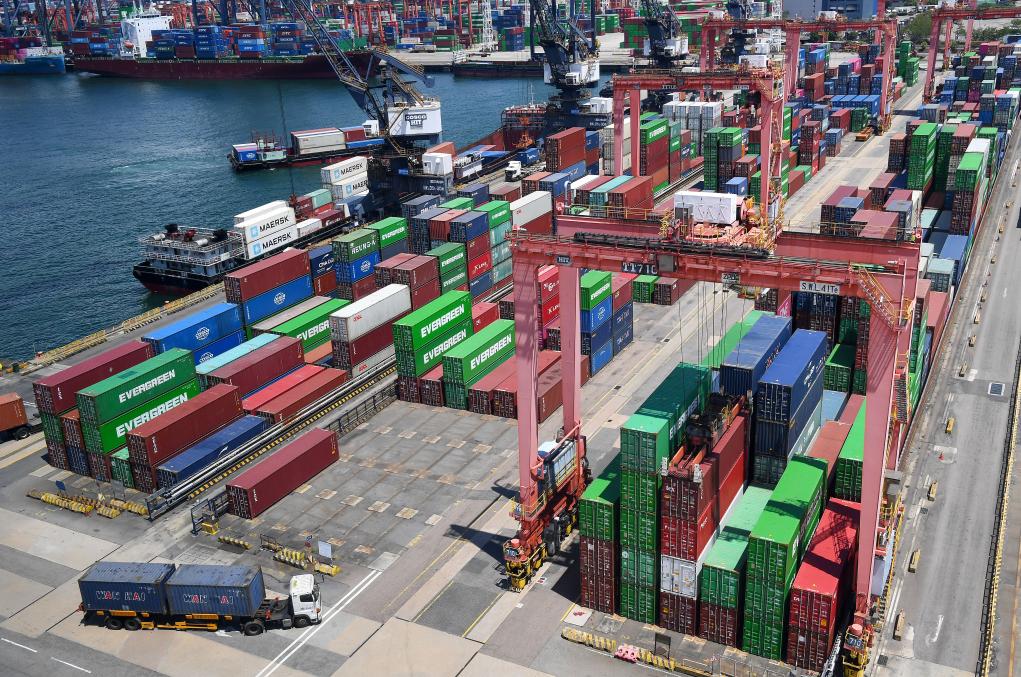 هونغ كونغ 27 يونيو 2025 (شينخوا) في الصورة الملتقطة يوم 22 مايو 2025، جانب من محطة الحاويات في منطقة هونغ كونغ الإدارية الخاصة بجنوبي الصين.