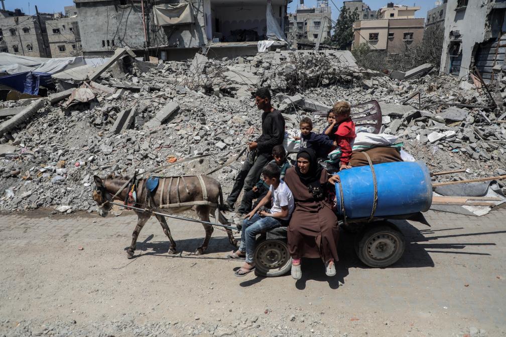 مدينة غزة 30 يونيو 2025 (شينخوا) في الصورة الملتقطة يوم 29 يونيو 2025، فلسطينيون يحملون أمتعتهم ويفرون من حي التفاح شرقي مدينة غزة.