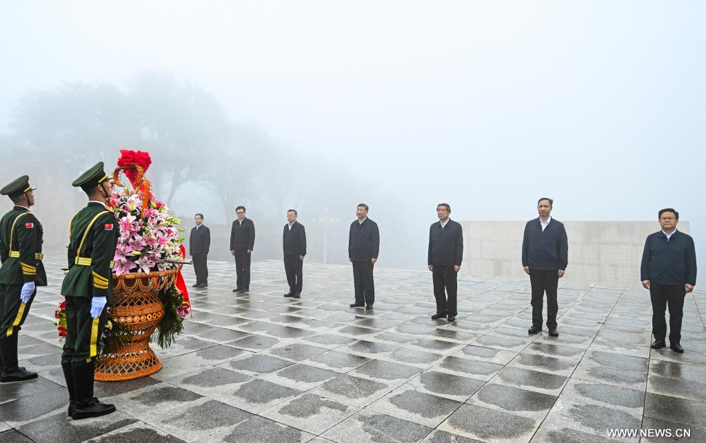 يانغتشيوان، شانشي 7 يوليو 2025 (شينخوا) قام شي جين بينغ، الأمين العام للجنة المركزية للحزب الشيوعي الصيني، بتكريم أرواح الشهداء الذين جادوا بحياتهم في حملة كبرى خلال حرب المقاومة الشعبية الصينية ضد العدوان الياباني، وذلك خلال زيارته إلى يانغتشيوان بمقاطعة شانشي شمالي الصين اليوم (الاثنين).