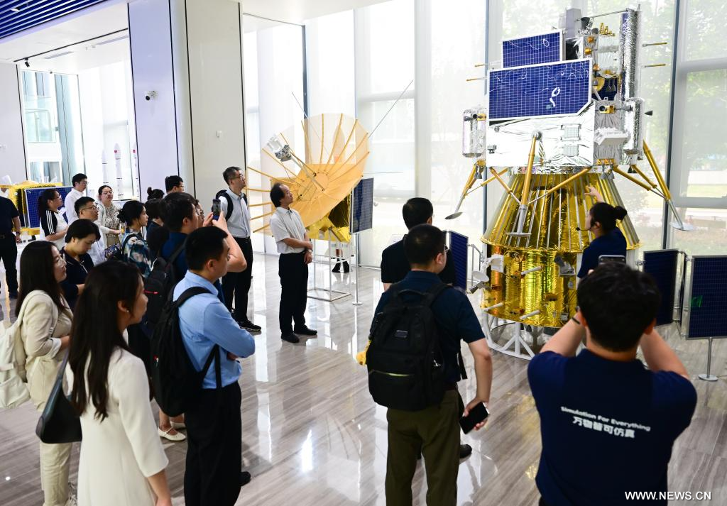 خفي 9 يوليو 2025 (شينخوا) في الصورة الملتقطة يوم 8 يوليو 2025، ضيوف يزورون قاعة العرض في مختبر استكشاف الفضاء السحيق في مدينة خفي بمقاطعة آنهوي بشرقي الصين.