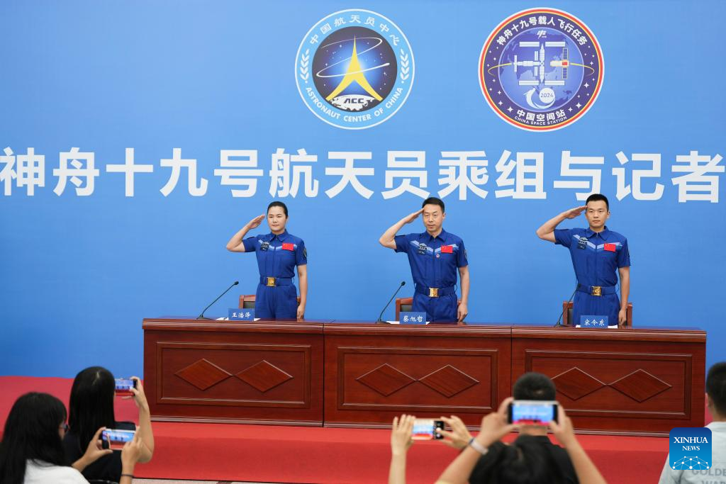 أفراد طاقم المهمة الفضائية الصينية "شنتشو-19" يلتقون بالصحفيين