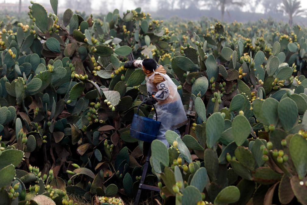 الصورة: حصاد التين الشوكي في محافظة القليوبية بمصر