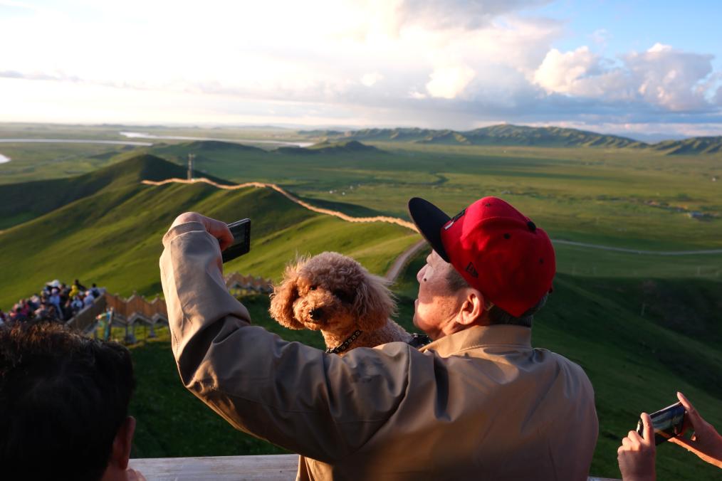 روهأرقاي 14 يوليو 2025 (شينخوا) في الصورة الملتقطة يوم 12 يوليو 2025، سائح يلتقط صورا في محافظة روهأرقاي بولاية آبا ذاتية الحكم لقوميتي التبت وتشيانغ بمقاطعة سيتشوان بجنوب غربي الصين.