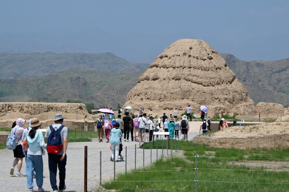 يينتشوان 15 يوليو 2025 (شينخوا) في الصورة الملتقطة يوم 13 يوليو 2025، جانب من حديقة المواقع الأثرية لمقابر "شيشيا" الإمبراطورية في يينتشوان حاضرة منطقة نينغشيا ذاتية الحكم لقومية هوي بشمال غربي الصين.