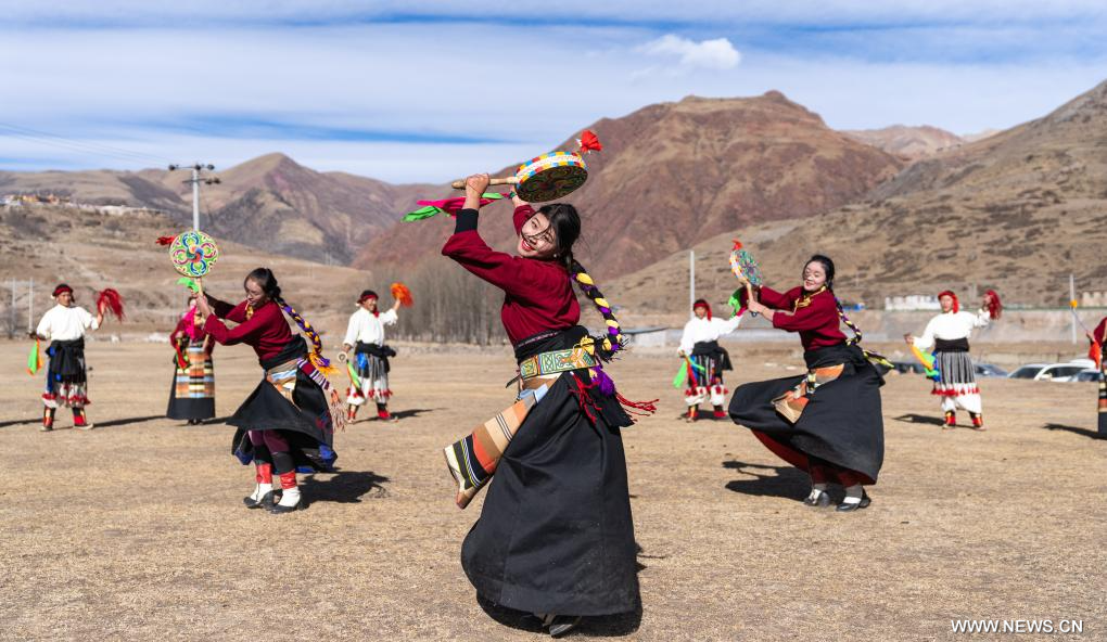 لاسا 17 يوليو 2025 (شينخوا) في الصورة الملتقطة يوم 5 يناير 2025، أشخاص يؤدون رقصة ريبا في بلدة تشيدو بمحافظة دنغتشين في مدينة تشامدو بمنطقة شيتسانغ ذاتية الحكم بجنوب غربي الصين.