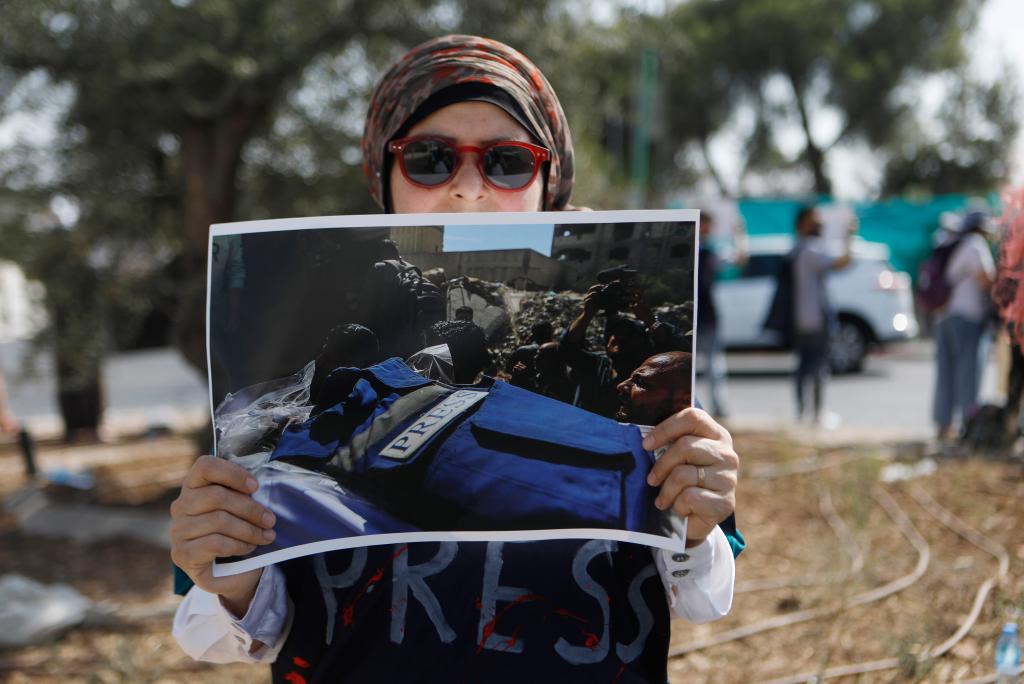 الصورة: تظاهرة احتجاجية في الضفة الغربية ضد مقتل صحفيين فلسطينيين