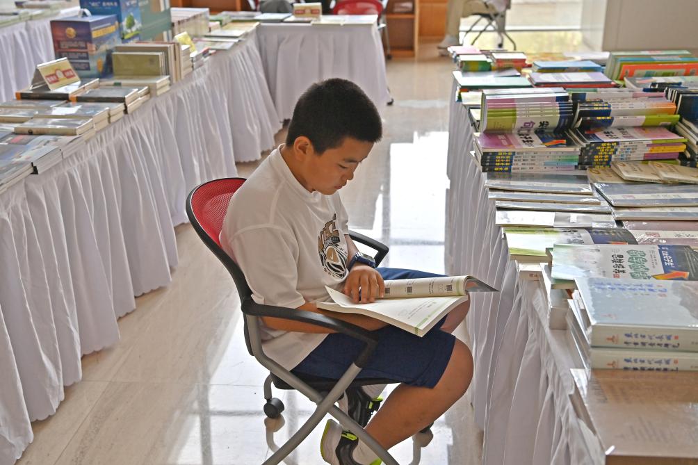 شنيانغ 16 أغسطس 2025 (شينخوا) في الصورة الملتقطة يوم 15 أغسطس 2025، طفل يتصفح كتابا خلال معرض للكتاب في مكتبة مقاطعة لياونينغ في مدينة شنيانغ بمقاطعة لياونينغ بشمال شرقي الصين. وانطلق معرض الكتاب يوم الجمعة المنصرم، ويجمع أكثر من 30 ناشرا وأكثر من 10 آلاف نوع من الكتب..
