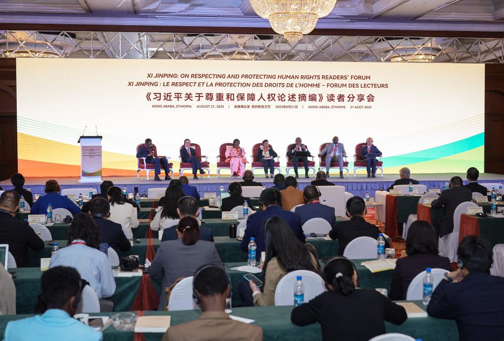 أديس أبابا 21 أغسطس 2025 (شينخوا) أقيم في أديس أبابا اليوم (الخميس) منتدى للقراء حول كتاب بعنوان "شي جين بينغ: بشأن احترام حقوق الإنسان وحمايتها".