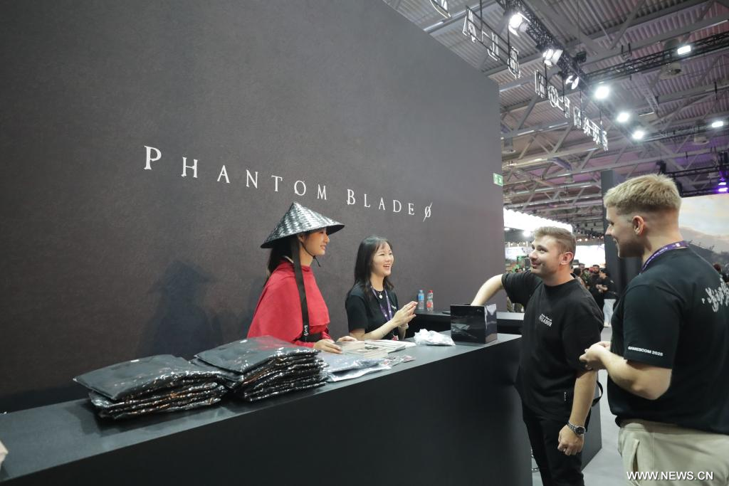 كولونيا، ألمانيا 23 أغسطس 2025 (شينخوا) تشبثت أصابع تيم بوحدة تحكم جهاز بلايستيشن 5 بينما كانت تظهر الكلمة الصينية التي تعني "الموت" أو "نهاية اللعبة" مرارا على الشاشة. وحمل البطل ذو الثياب السوداء الذي كان يتحكم به، معه أجواء الخيال القتالي الصيني، جاذبا أحد أطول طوابير الانتظار في معرض جيمزكوم 2025.