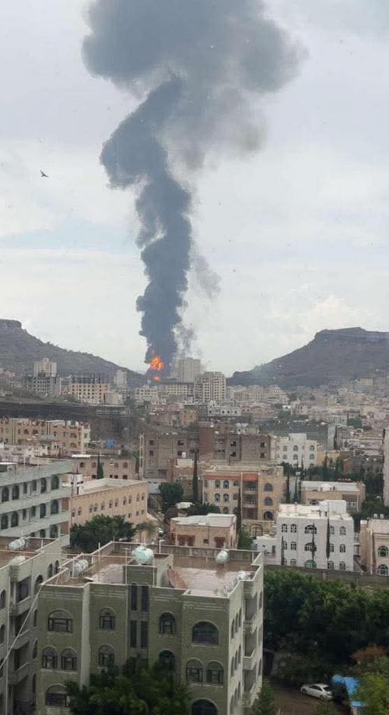 كما تصاعدت أعمدة الدخان في منطقة قريبة من دار الرئاسة وسط العاصمة صنعاء، وفي محطة حزيز للطاقة جنوب العاصمة، وفق السكان.