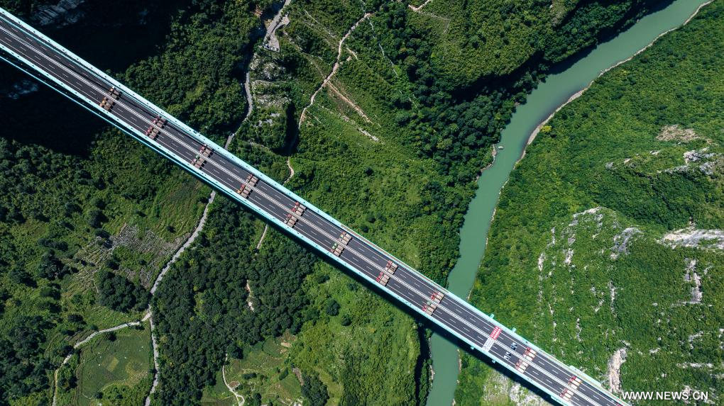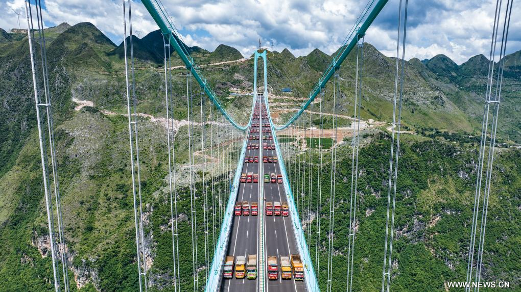 أعلى جسر في العالم يكمل اختبار التحميل في قويتشو بجنوب غربي الصين
