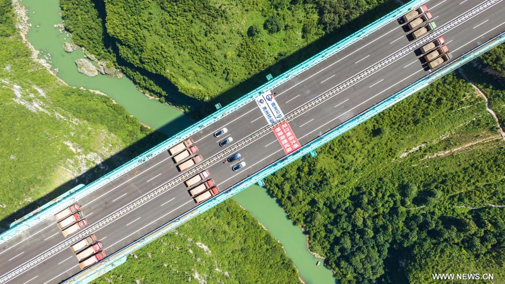 قوييانغ 26 أغسطس 2025 (شينخوا) أكمل جسر "هواجيانغ جراند كانيون" في مقاطعة قويتشو بجنوب غربي الصين، المقرر أن يصبح أعلى جسر في العالم، اختبار تحميل مهما يوم الاثنين الماضي، وذلك قبل افتتاحه المقرر في أواخر سبتمبر المقبل.