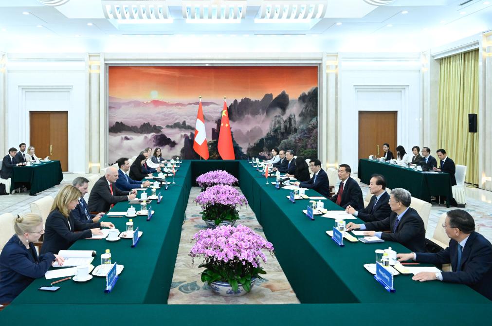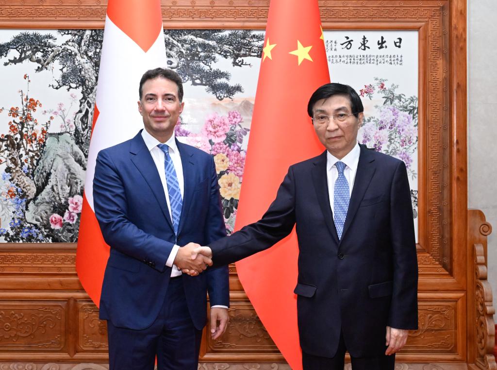 كبير المستشارين السياسيين الصينيين يلتقي رئيس مجلس الولايات السويسري