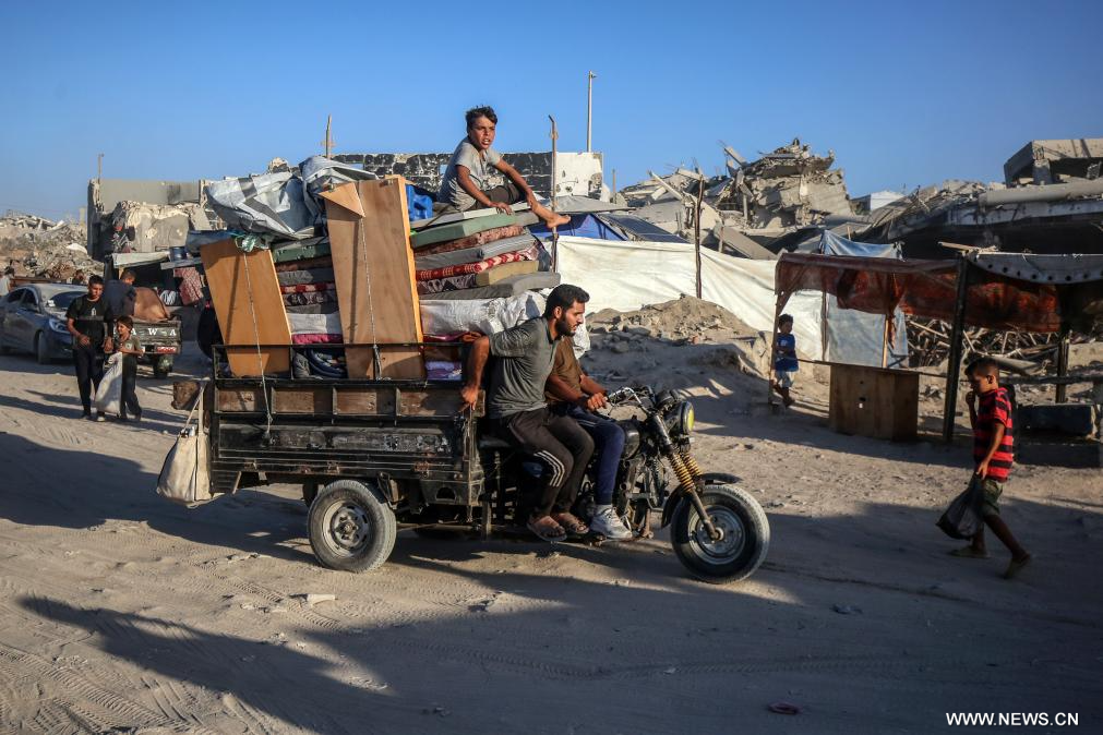 مدينة غزة 29 أغسطس 2025 (شينخوا) في الصورة الملتقطة يوم 28 أغسطس 2025، فلسطينيون يفرون باتجاه جنوب قطاع غزة عبر إحدى الطرق في مدينة غزة.