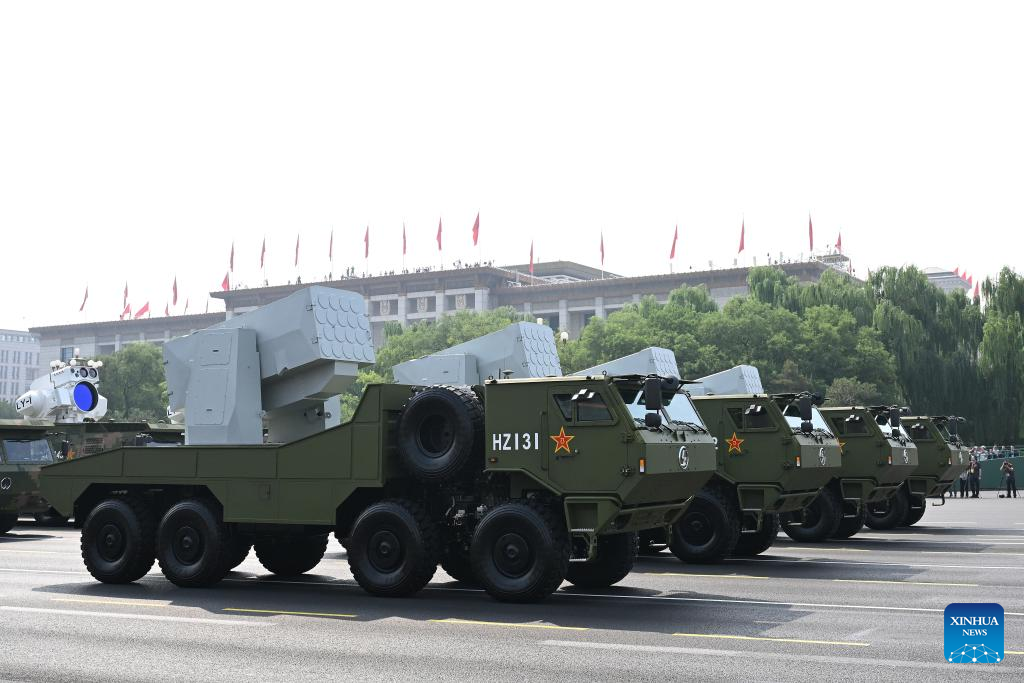 بكين 3 سبتمبر 2025 (شينخوا) ظهرت أربعة أنواع من معدات الدفاع الجوي القائمة على حاملات الطائرات خلال العرض العسكري بمناسبة يوم النصر في الصين، والتي تشكّل نظاما متعدد الطبقات للدفاع الجوي يغطي جميع نطاقات المدى.
