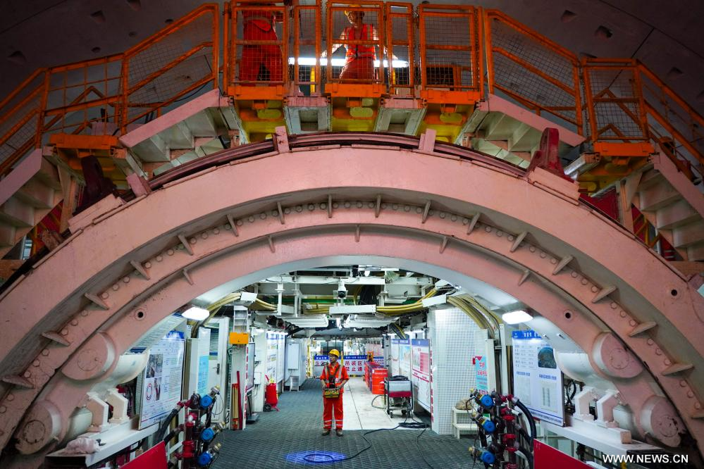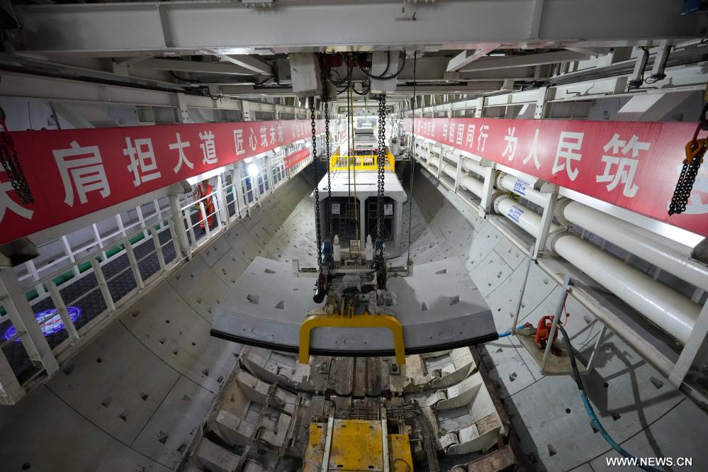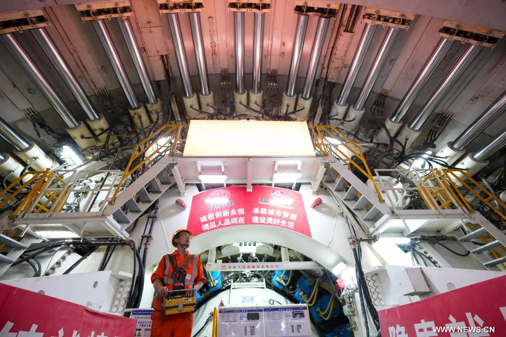 جينان 14 سبتمبر 2025 (شينخوا) في الصورة الملتقطة يوم 12 سبتمبر 2025، جانب لموقع بناء نفق أسفل النهر الأصفر في مدينة جينان بمقاطعة شاندونغ شرقي الصين.